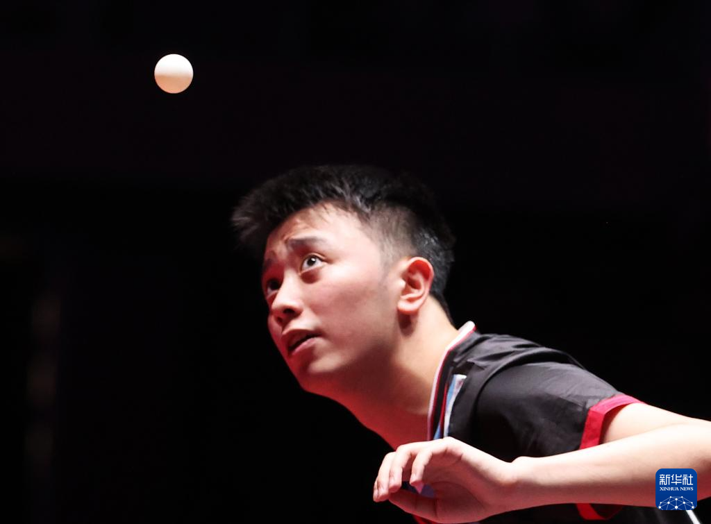 8月30日,黄石华新队选手林诗栋在比赛中。他在单打比赛中3比0战胜汕头明润队选手陈垣宇。