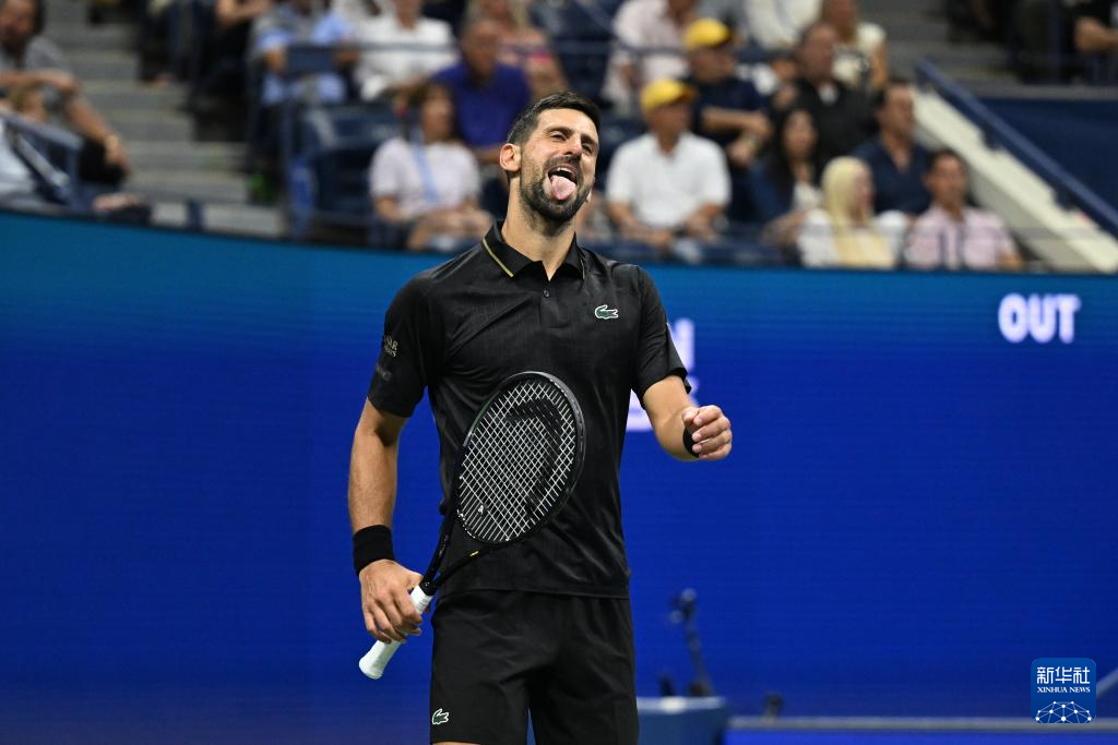 8月29日,焦科维奇在获胜后做出拉小提琴的动作庆祝。
