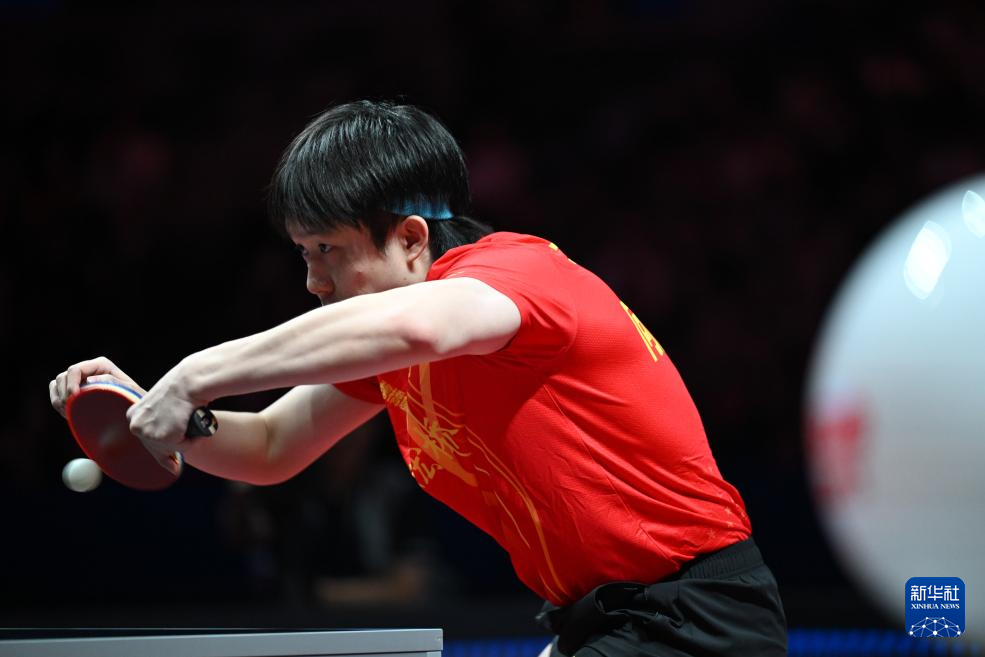 8月31日,山东魏桥·向尚运动队选手王楚钦在比赛中回球。他在单打比赛中2比3不敌山东鲁能队选手徐瑛彬。