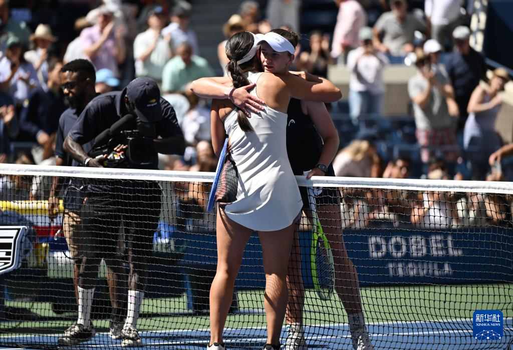 9月2日,克赖奇科娃(右)和佩古拉在比赛后拥抱致意。