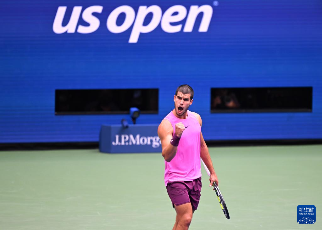 9月5日,阿尔卡拉斯在比赛后庆祝胜利。