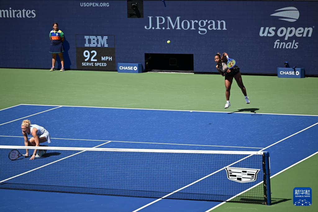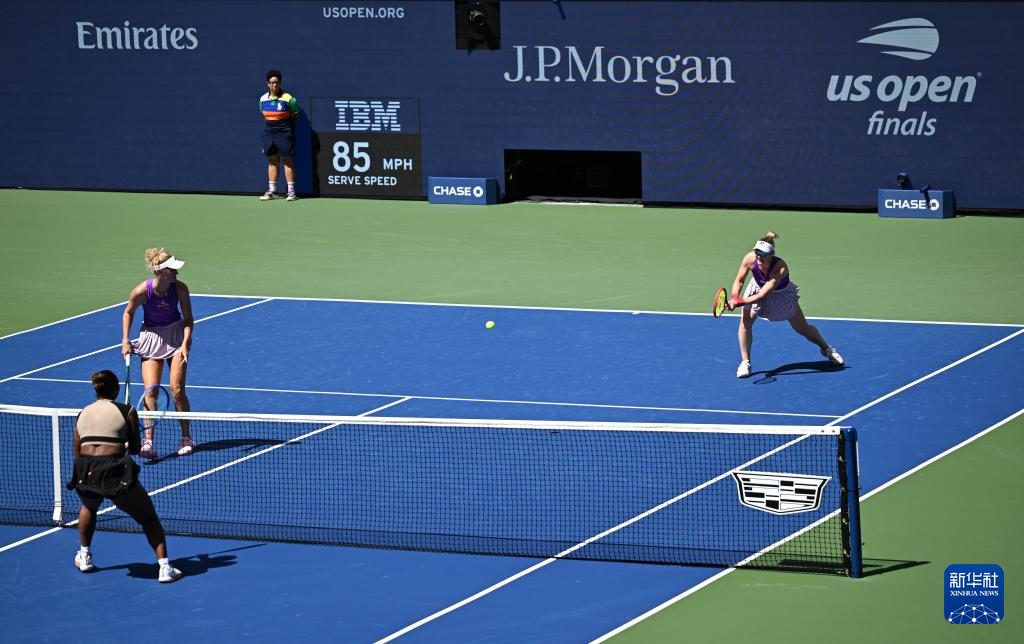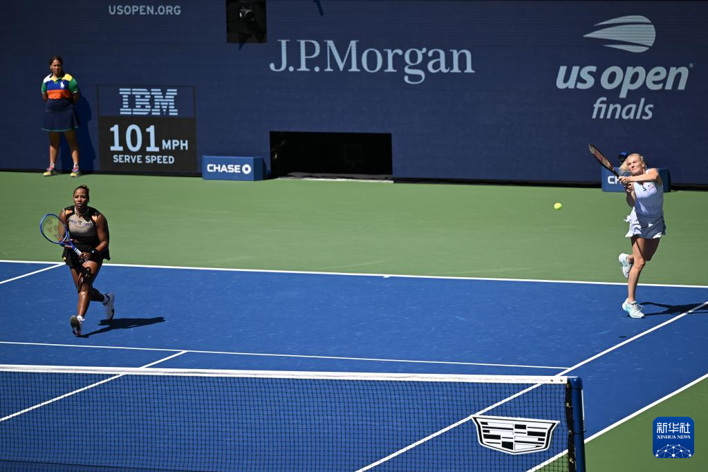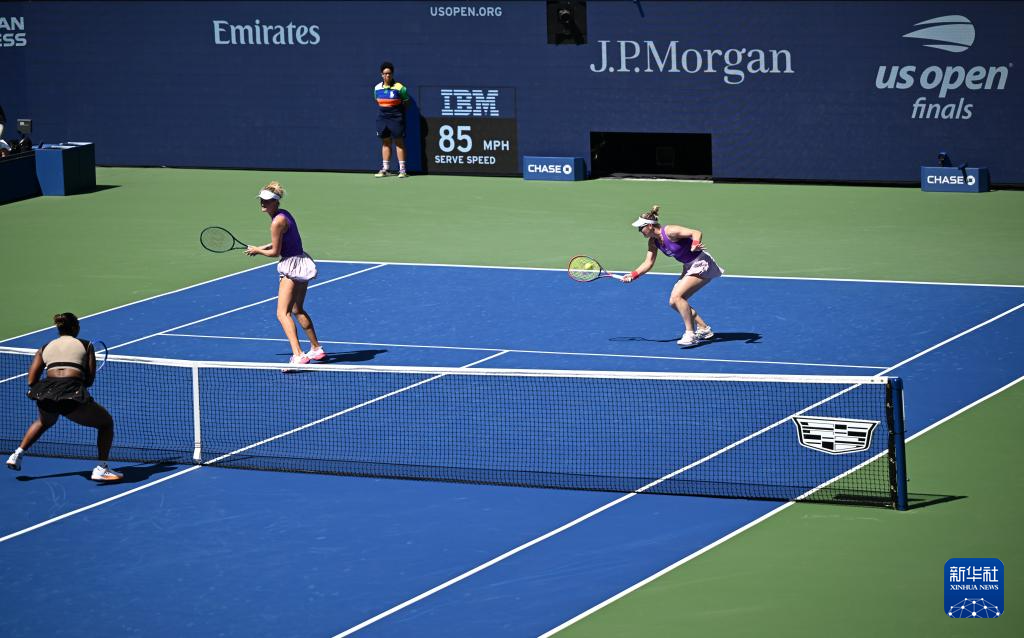 9月5日,西尼亚科娃(右)/汤森德在比赛中回球。