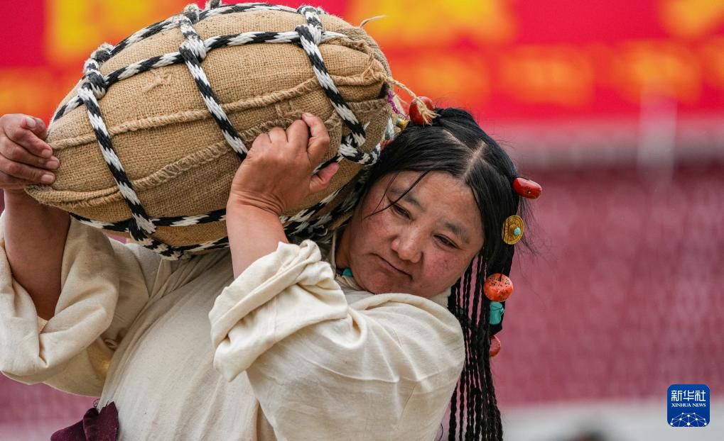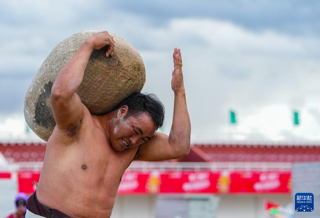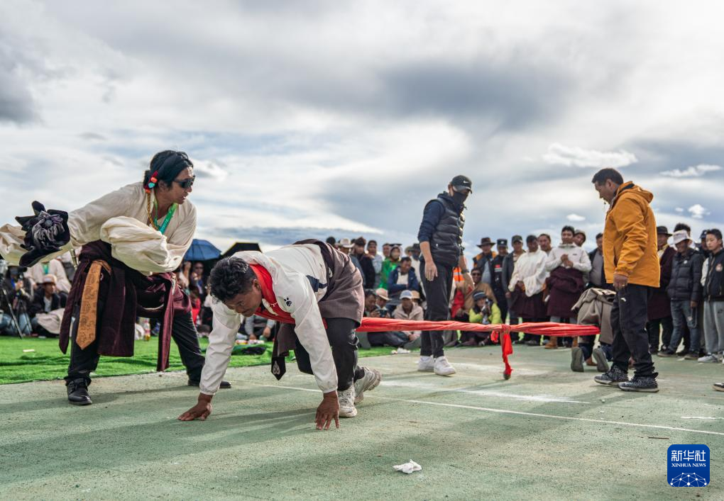 9月6日,在那曲市恰青赛马节现场,选手们参加押加比赛。