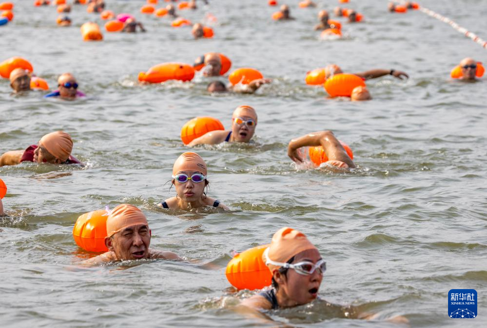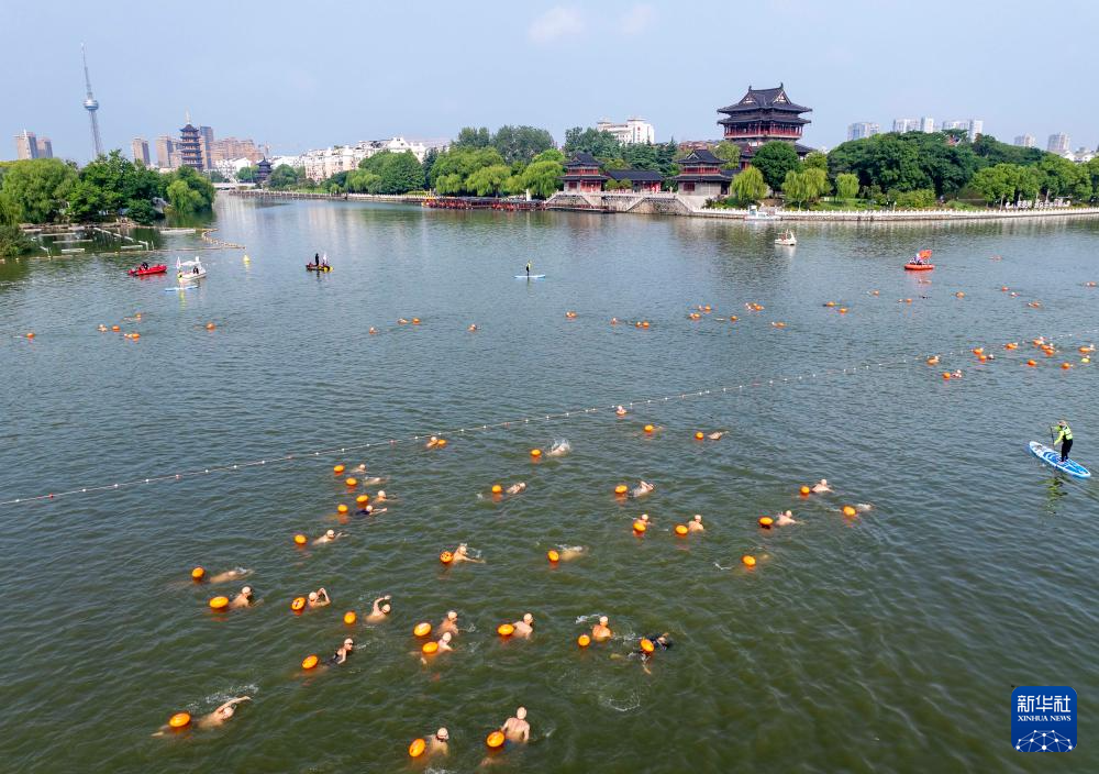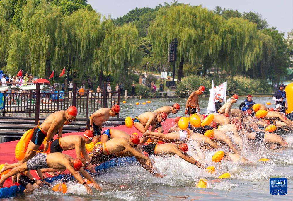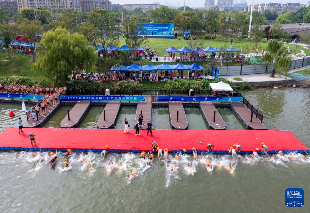 当日,2025年第25届全国公开水域游泳锦标赛在江苏省泰州市海陵区凤城河水域开赛。