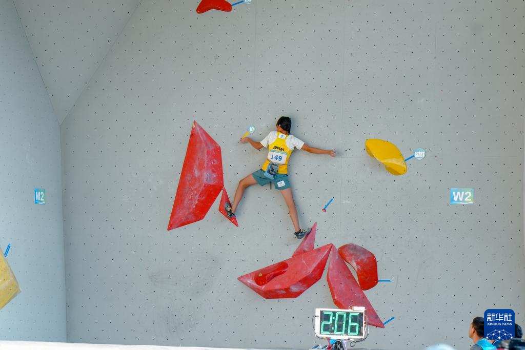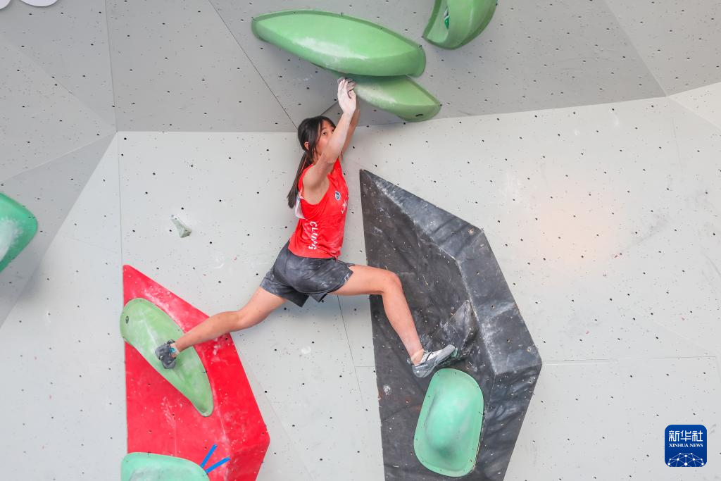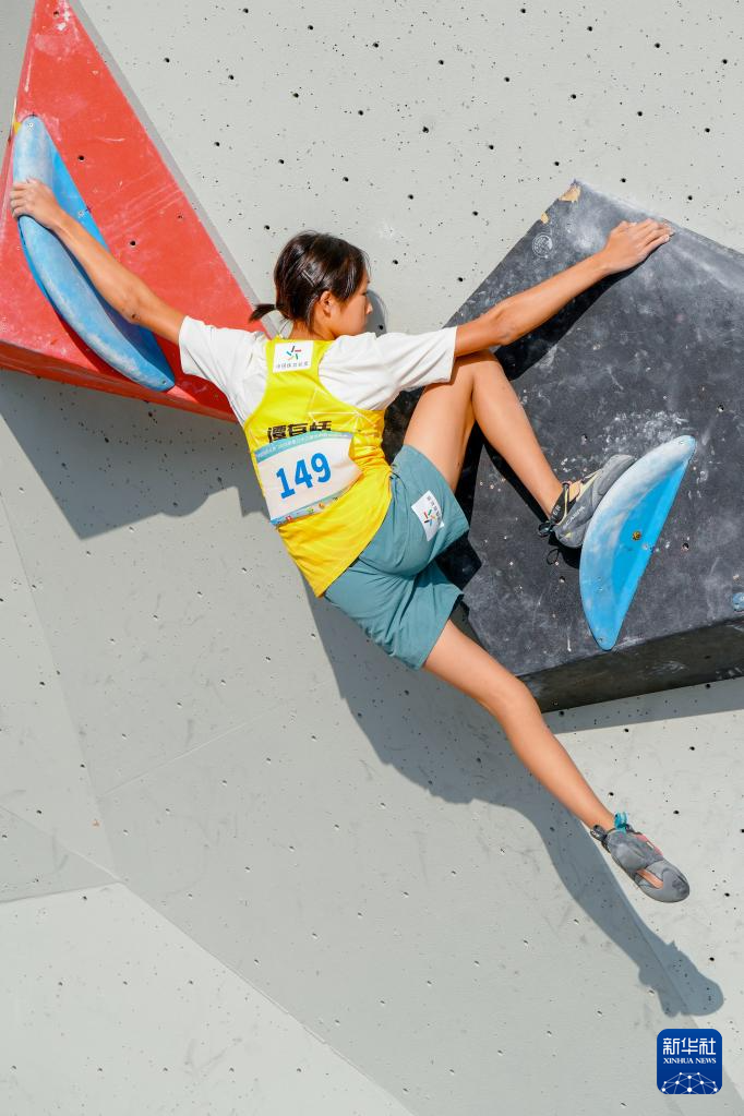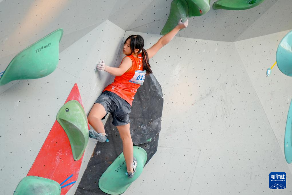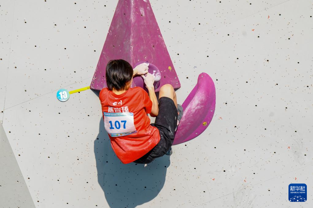 当日,第32届全国攀岩锦标赛女子攀石决赛在重庆举行。