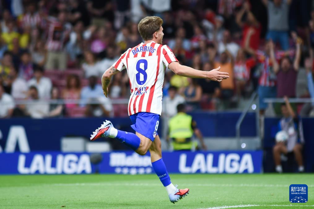 9月13日,马德里竞技队球员巴里奥斯庆祝进球。