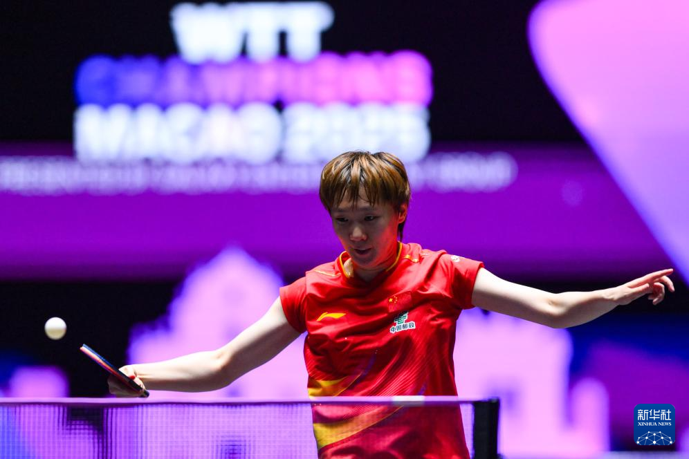 当日,在澳门进行的2025年世界乒乓球职业大联盟(WTT)澳门冠军赛女子单打四分之一决赛中,中国选手王曼昱4比0战胜中国澳门选手朱雨玲,晋级四强。
