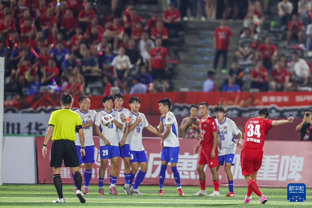 当日,2025重庆市足球超级联赛在重庆市渝中区大田湾体育场开赛。在中心城区赛区首轮比赛中,九龙鑫源熊猫队3比2战胜渝中半岛队。