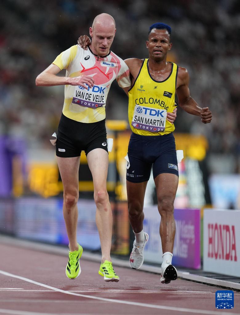 9月13日,比利时选手蒂姆·范德韦尔德(左)搀扶受伤的哥伦比亚选手卡洛斯·圣·马丁冲过终点。