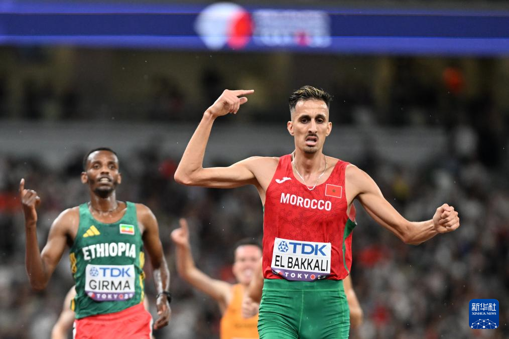 9月13日,摩洛哥选手艾尔巴卡里(前)在比赛中冲线。