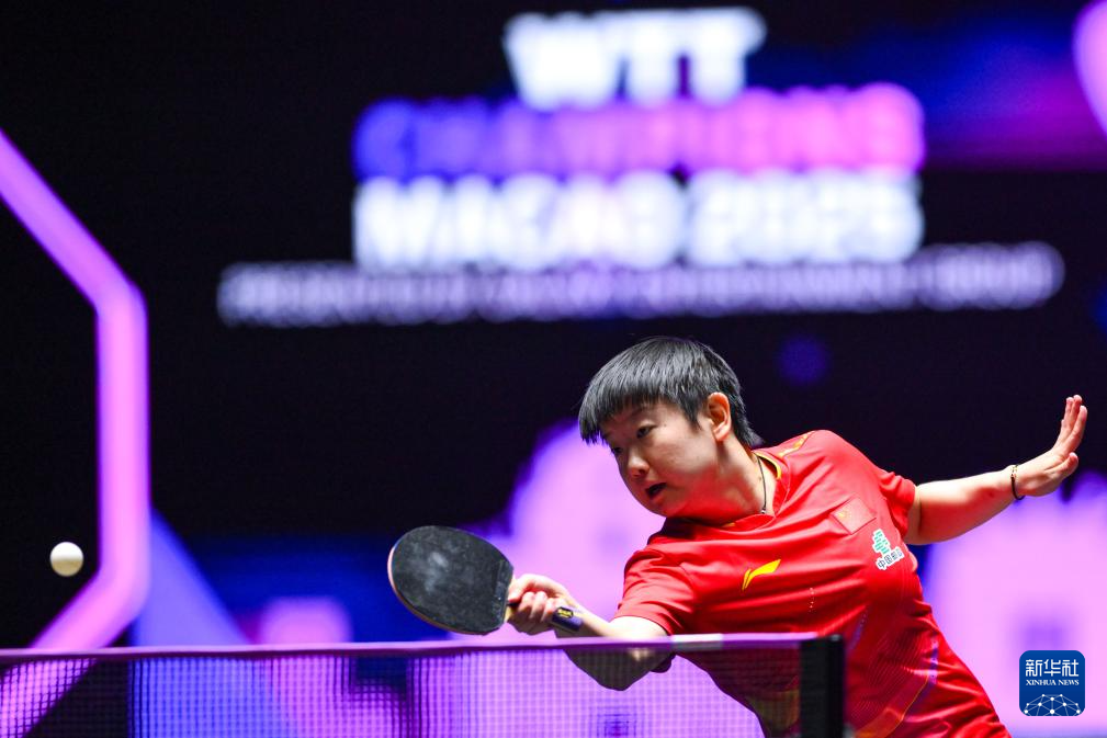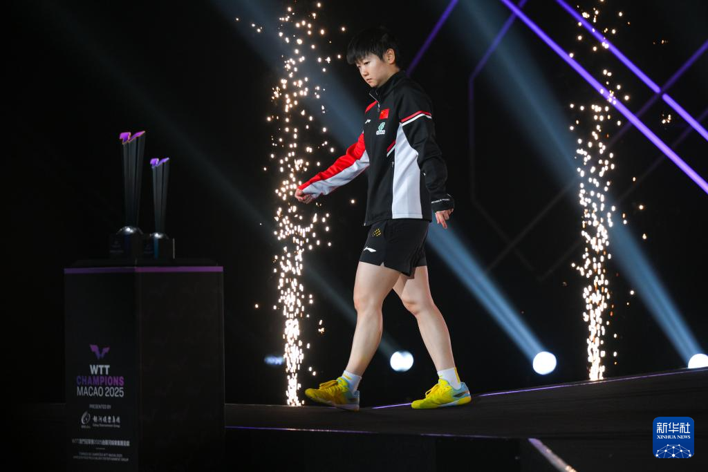 当日,在澳门进行的2025年世界乒乓球职业大联盟(WTT)澳门冠军赛女子单打决赛中,中国选手孙颖莎4比3战胜队友王曼昱,夺得冠军。