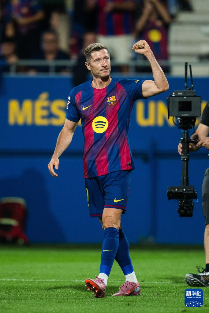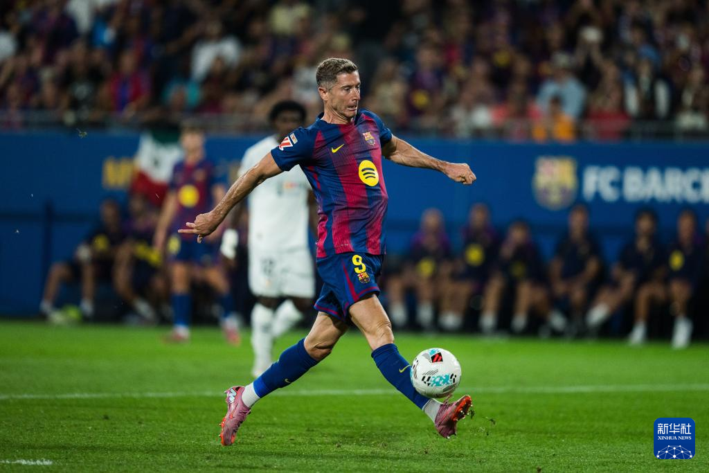 9月14日,巴塞罗那队球员莱万多夫斯基在比赛中。