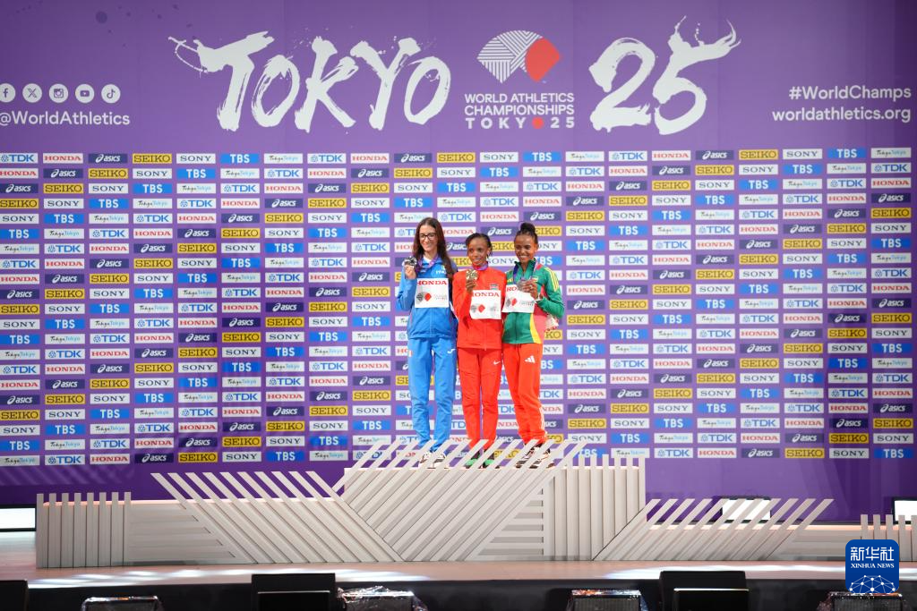 当日,2025年世界田径锦标赛女子10000米颁奖仪式在日本东京举行。