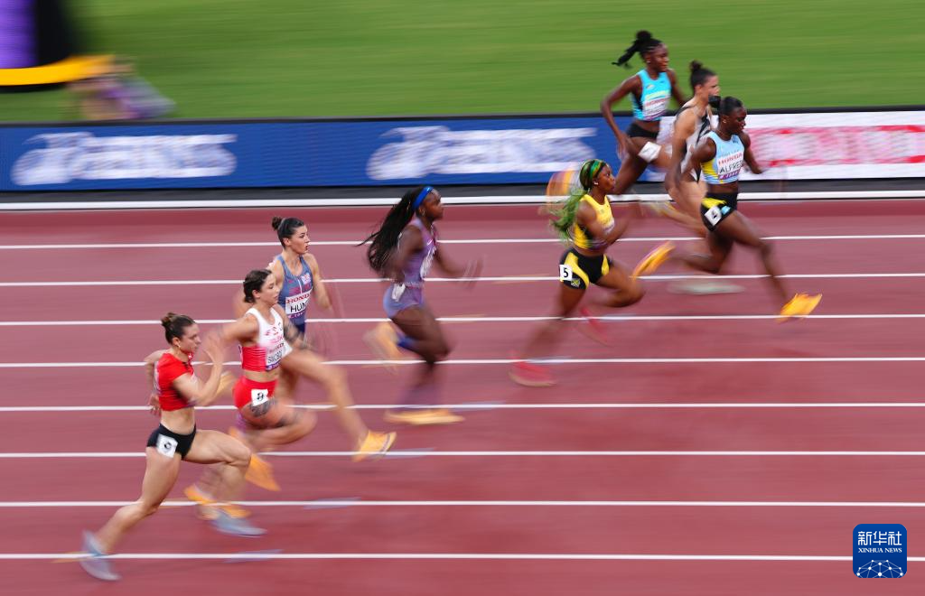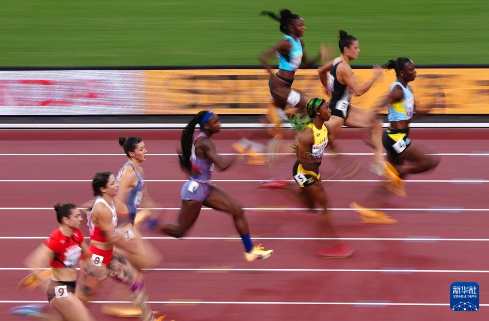 9月14日,牙买加选手弗雷泽-普莱斯(右三)在比赛中。最终,她晋级决赛。