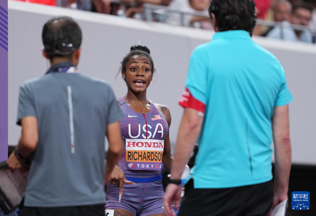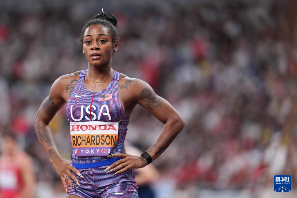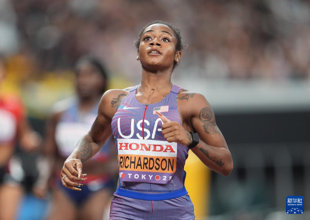 9月14日,美国选手理查德森在比赛后。最终,她晋级决赛。