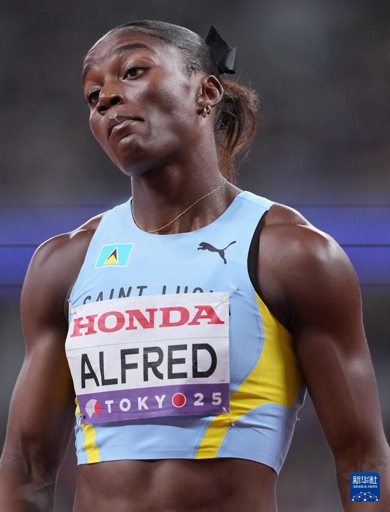 9月14日,圣卢西亚选手阿尔弗雷德在比赛后。最终,她晋级决赛。