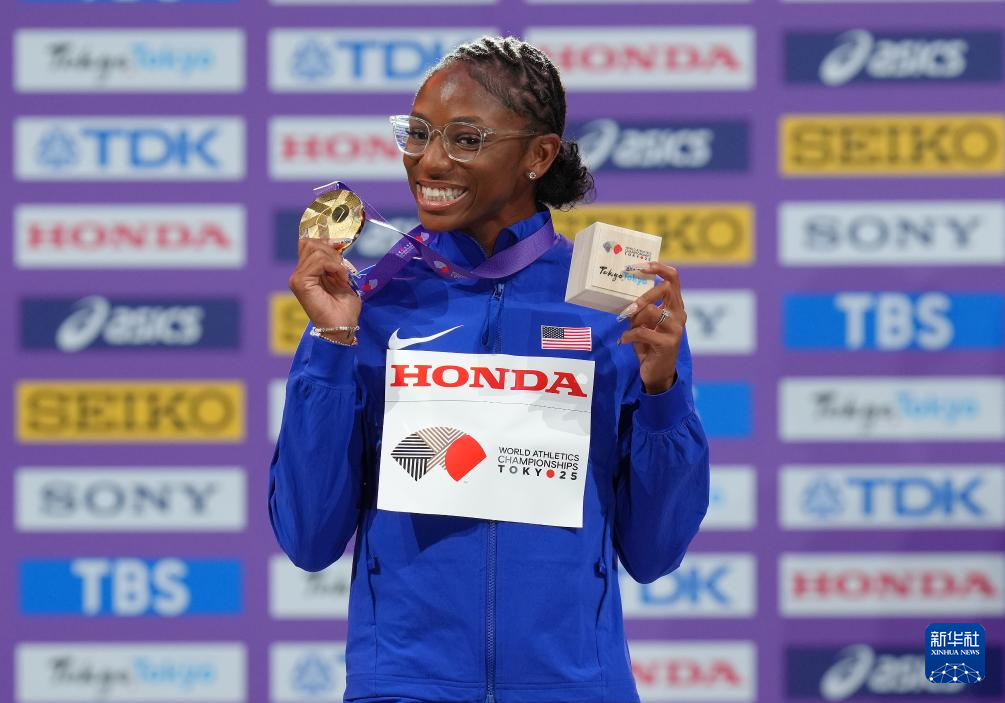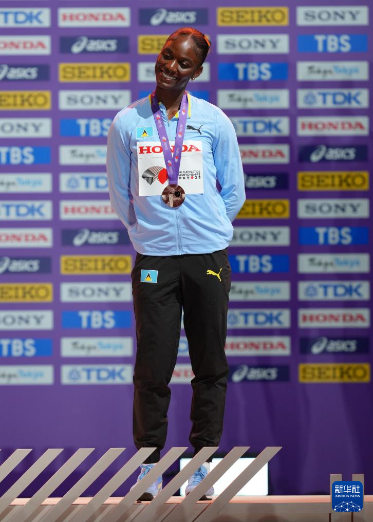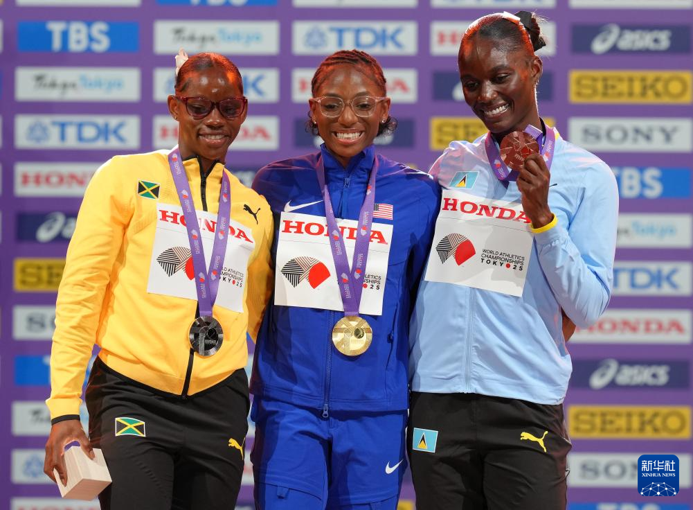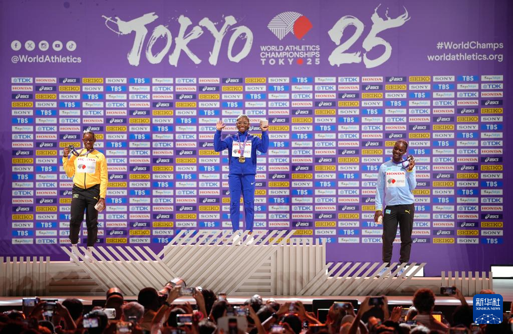 当日,2025年世界田径锦标赛女子100米颁奖仪式在日本东京举行。