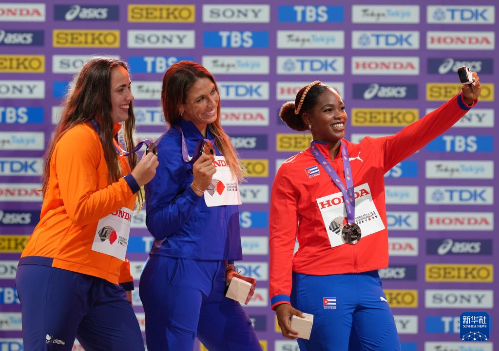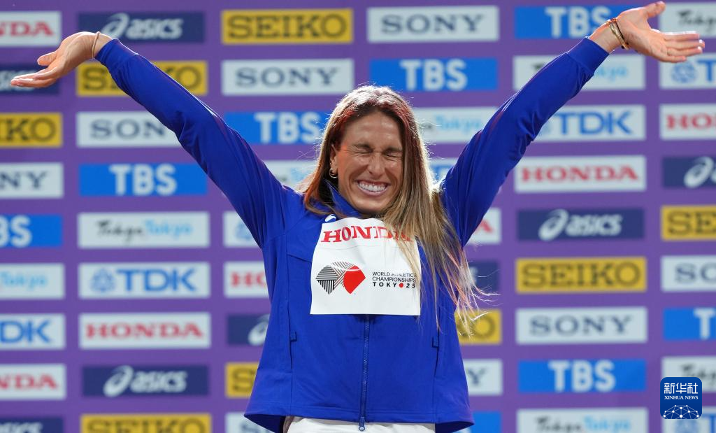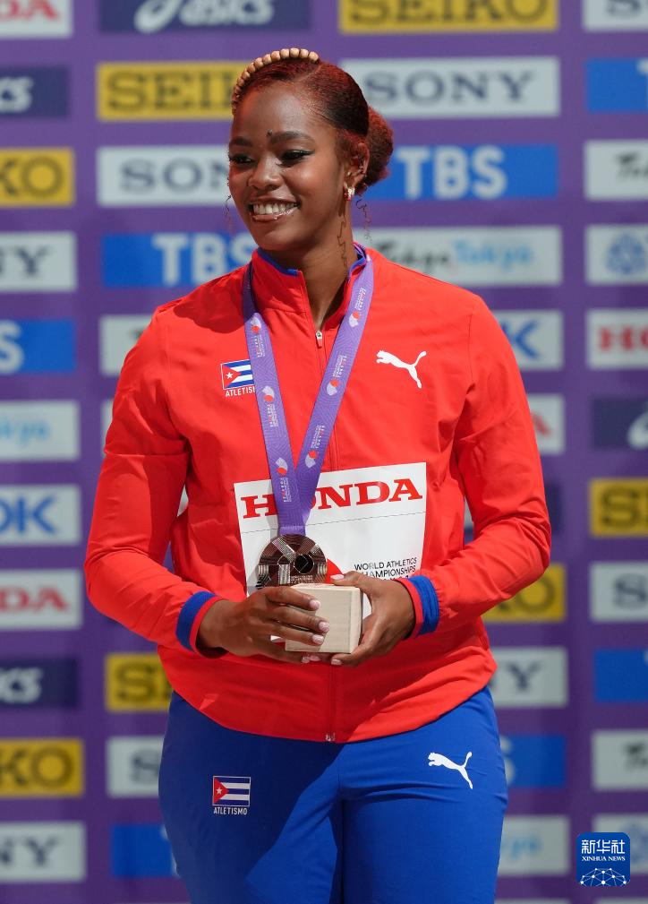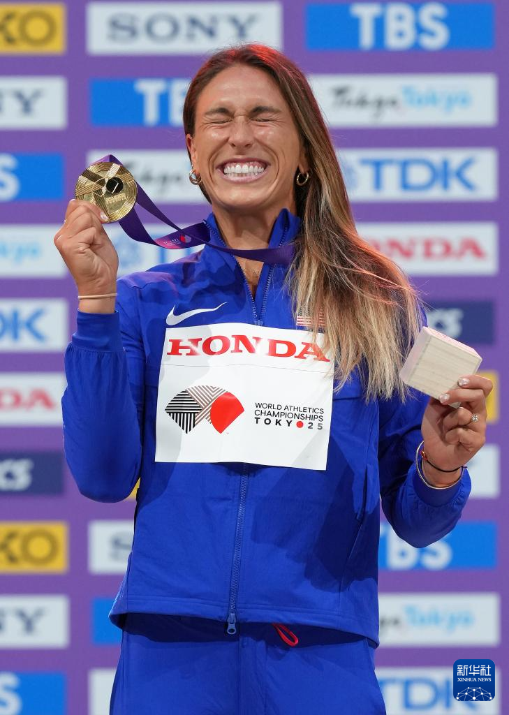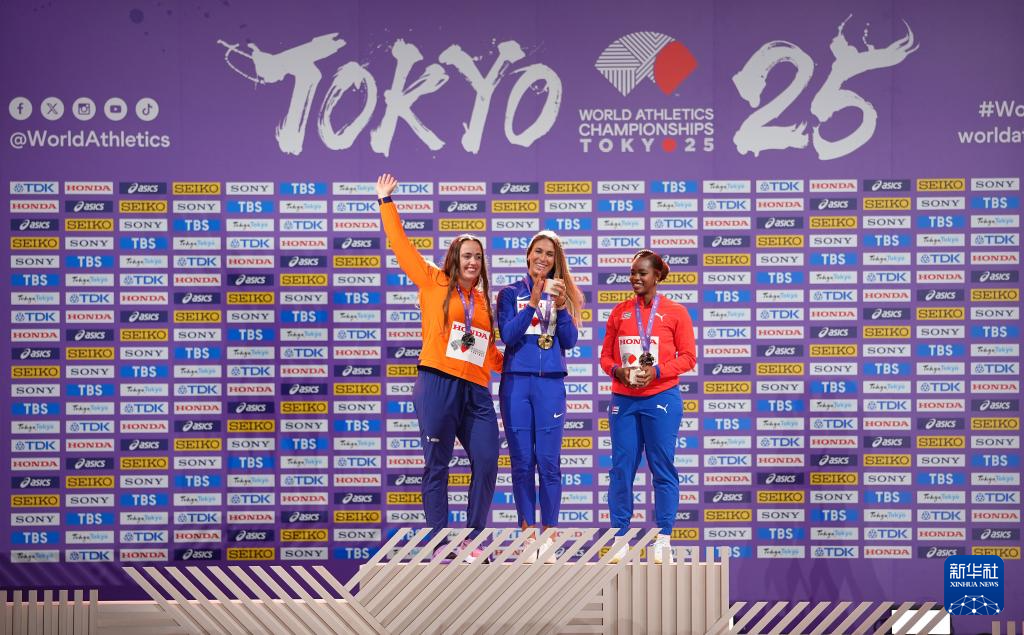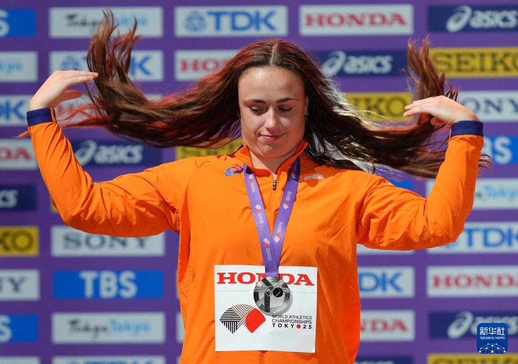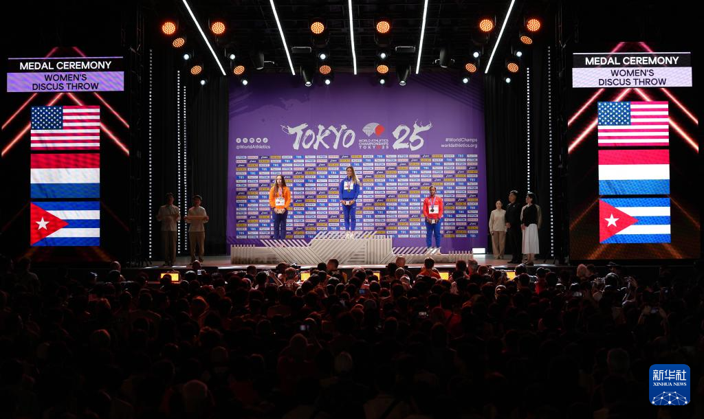 当日,2025年世界田径锦标赛女子铁饼颁奖仪式在日本东京举行。