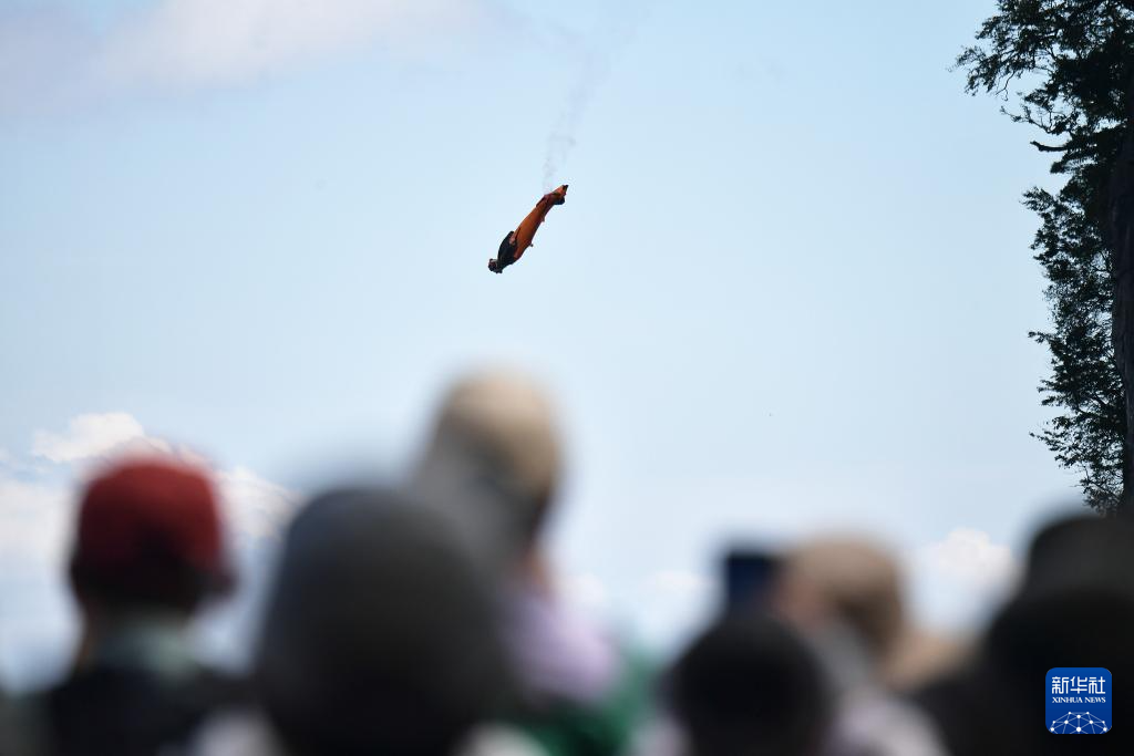 9月16日,翼装飞行运动员在进行竞速赛比赛。