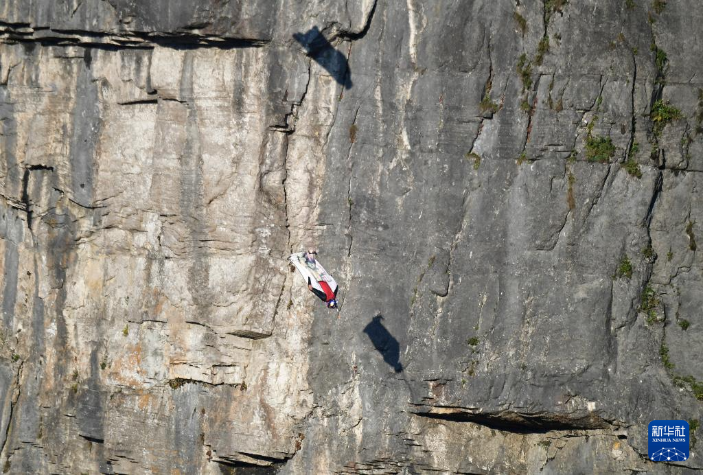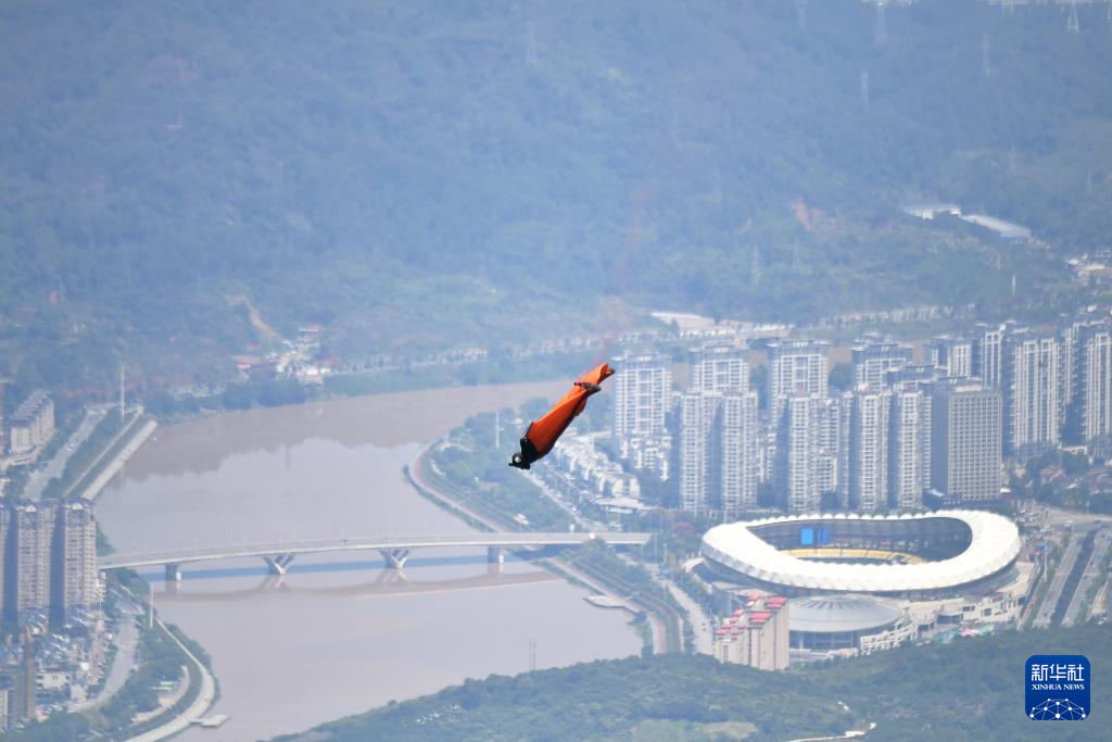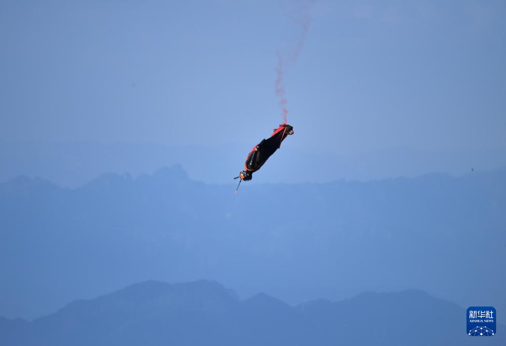 9月16日,翼装飞行运动员在进行大回环竞速赛比赛。