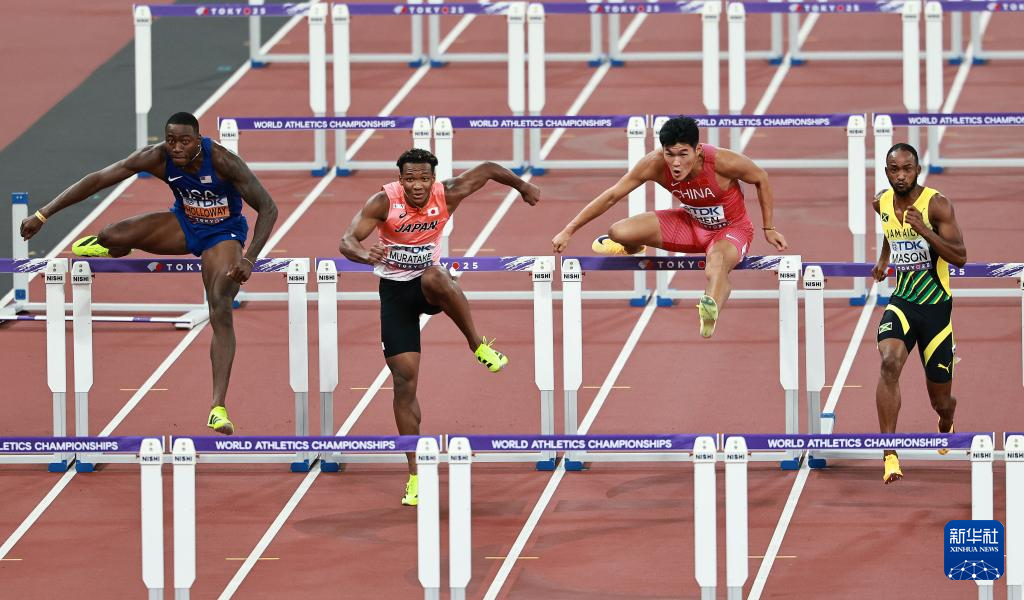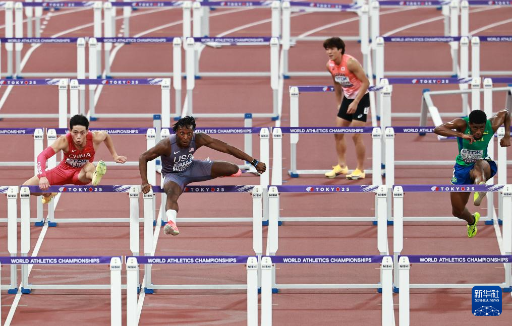 当日,2025年世界田径锦标赛男子110米栏半决赛在日本东京举行。
