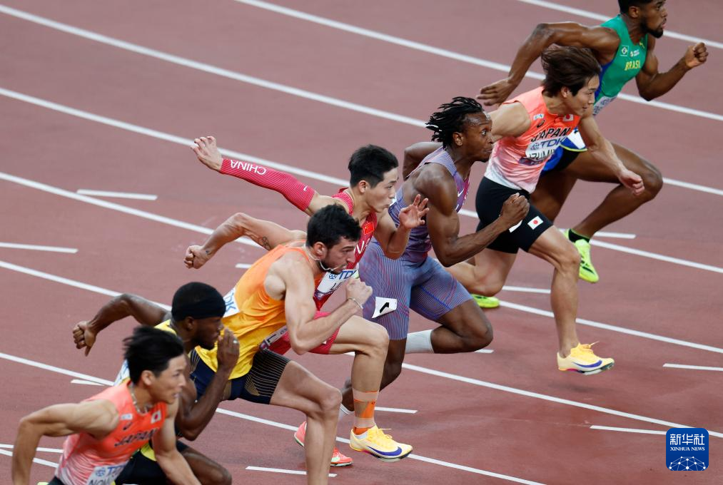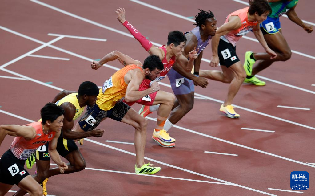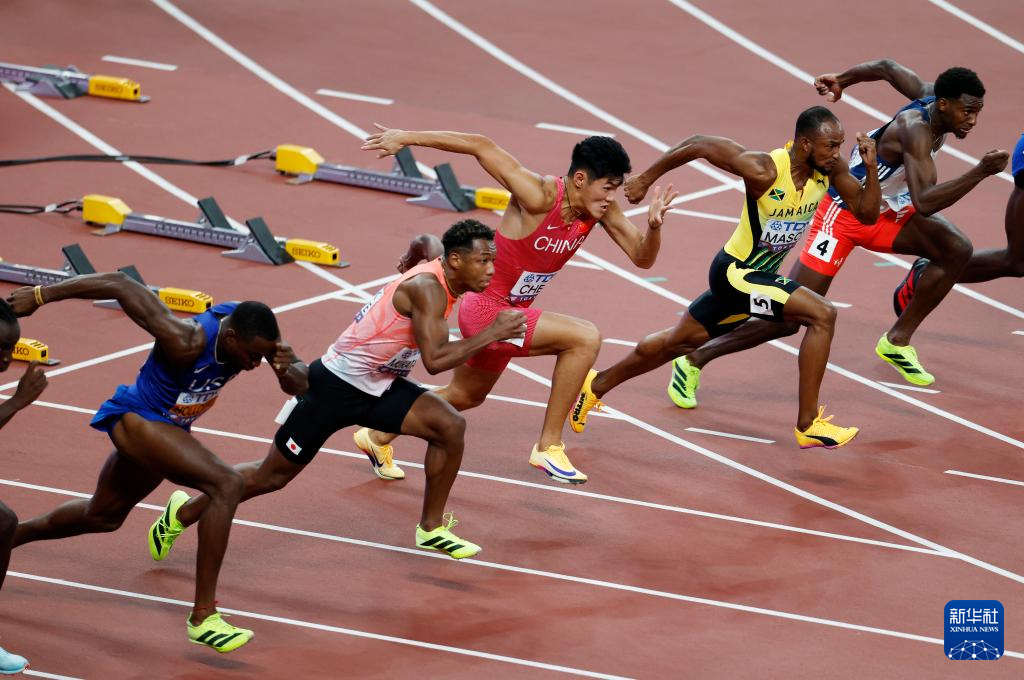 9月16日,中国选手徐卓一(右三)在半决赛中起跑。最终,他无缘决赛。