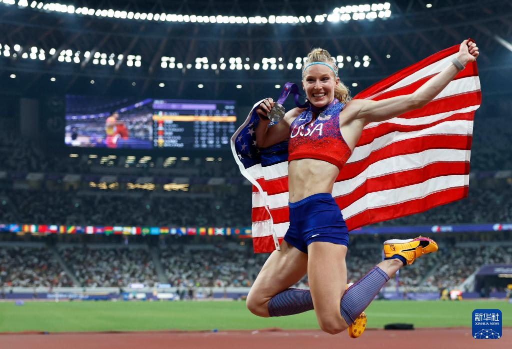 9月17日,美国选手莫里斯在决赛最后一次试跳后。最终她获得亚军。