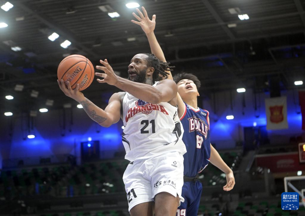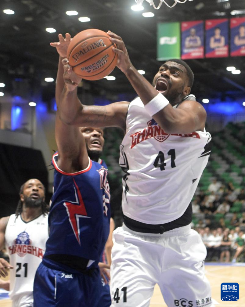 9月17日,湖南长沙电信勇胜队球员威尔斯(左)在比赛中上篮。