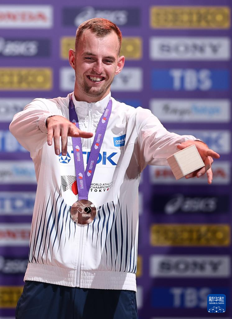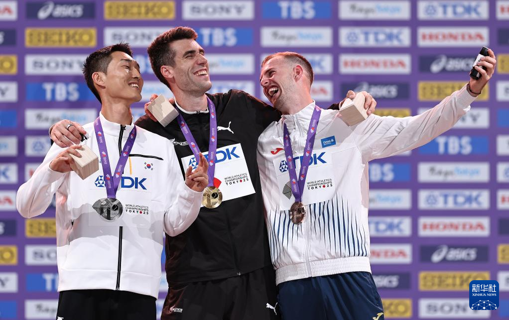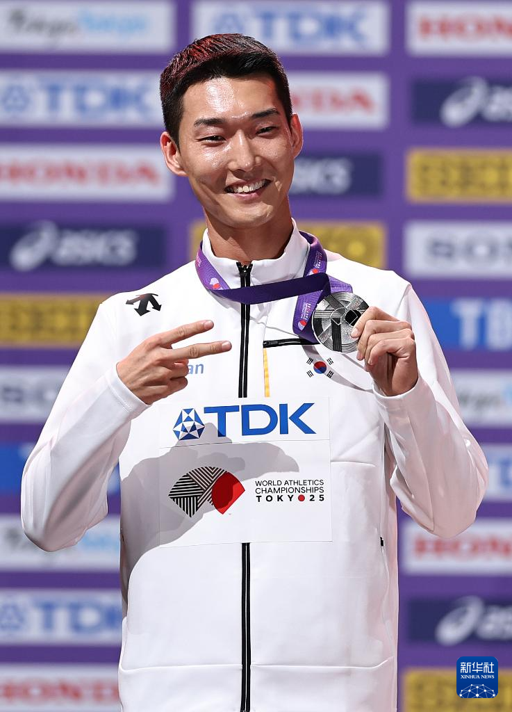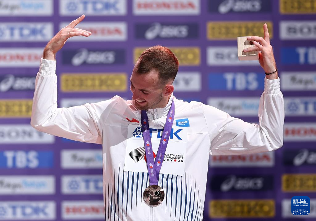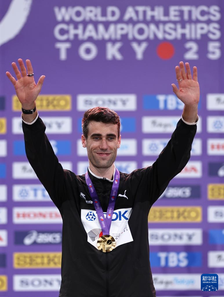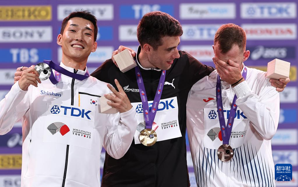 当日,2025年世界田径锦标赛男子跳高颁奖仪式在日本东京举行。