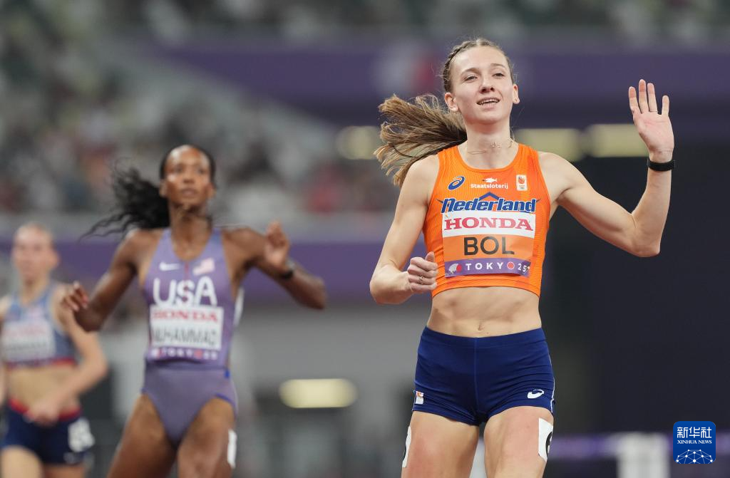 9月17日,荷兰选手波尔(右)在比赛中冲过终点。最终,她晋级决赛。