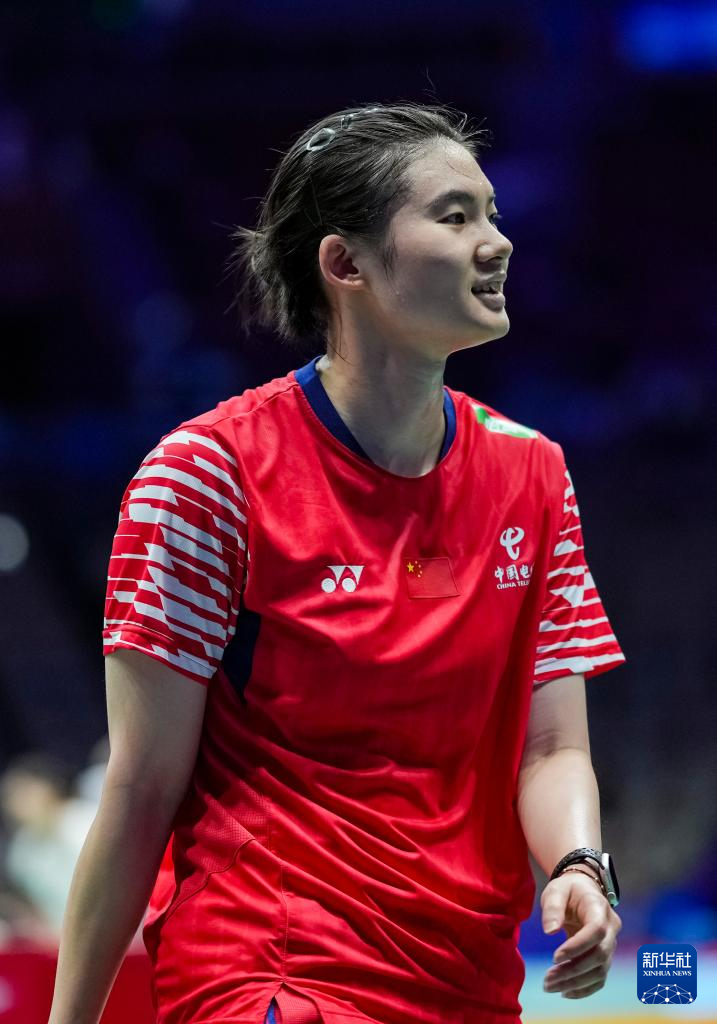 当日,在广东深圳举行的2025中国羽毛球大师赛女子单打四分之一决赛中,中国选手韩悦2比1战胜队友陈雨菲,晋级半决赛。