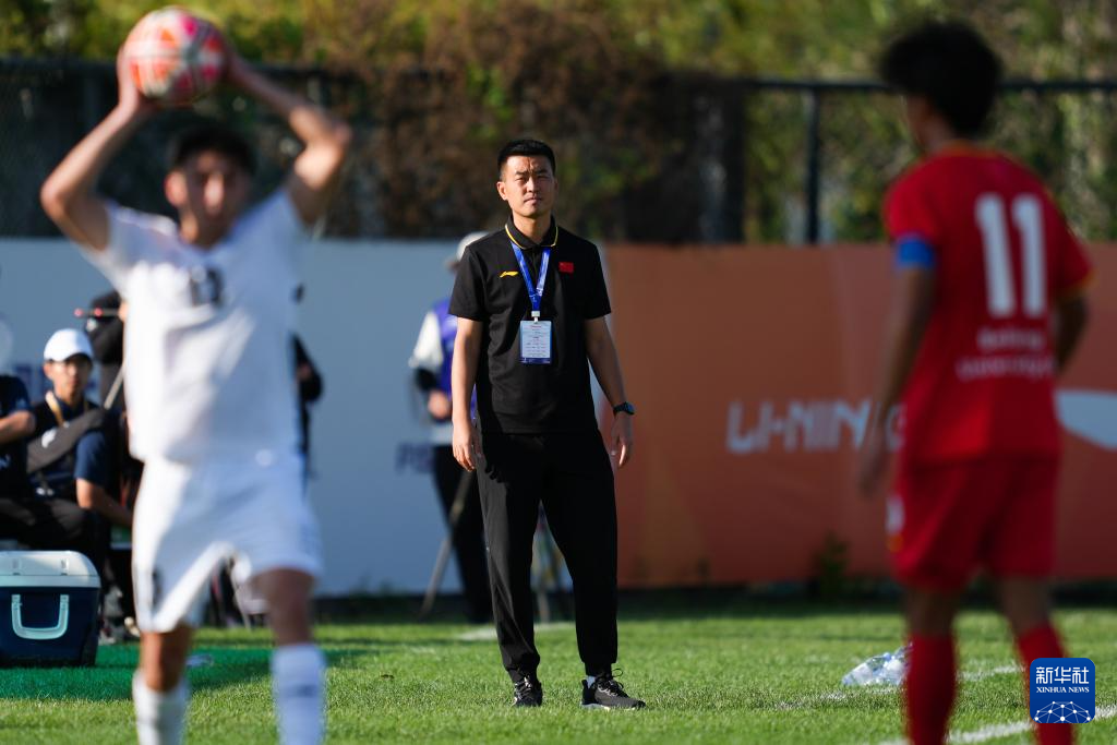 9月18日,北京航空航天大学男足主教练徐昆(中)在场边指挥。