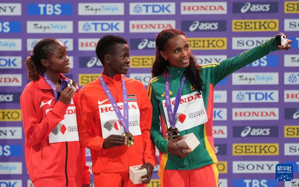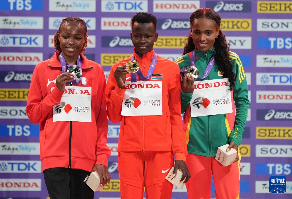 当日,2025年世界田径锦标赛女子3000米障碍颁奖仪式在日本东京举行。