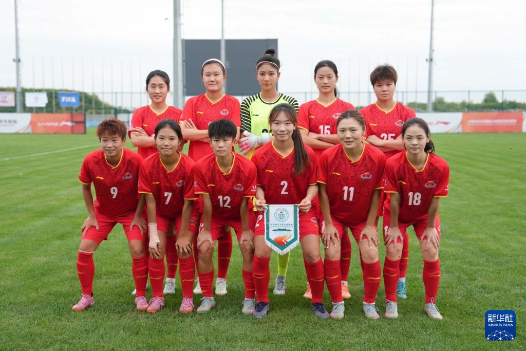 9月19日,上海体育大学女足首发球员在比赛前合影。