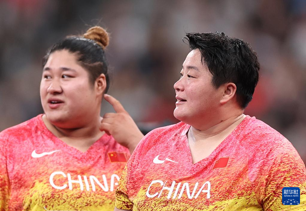 9月20日,中国选手巩立姣(右)和张林茹在赛后合影。