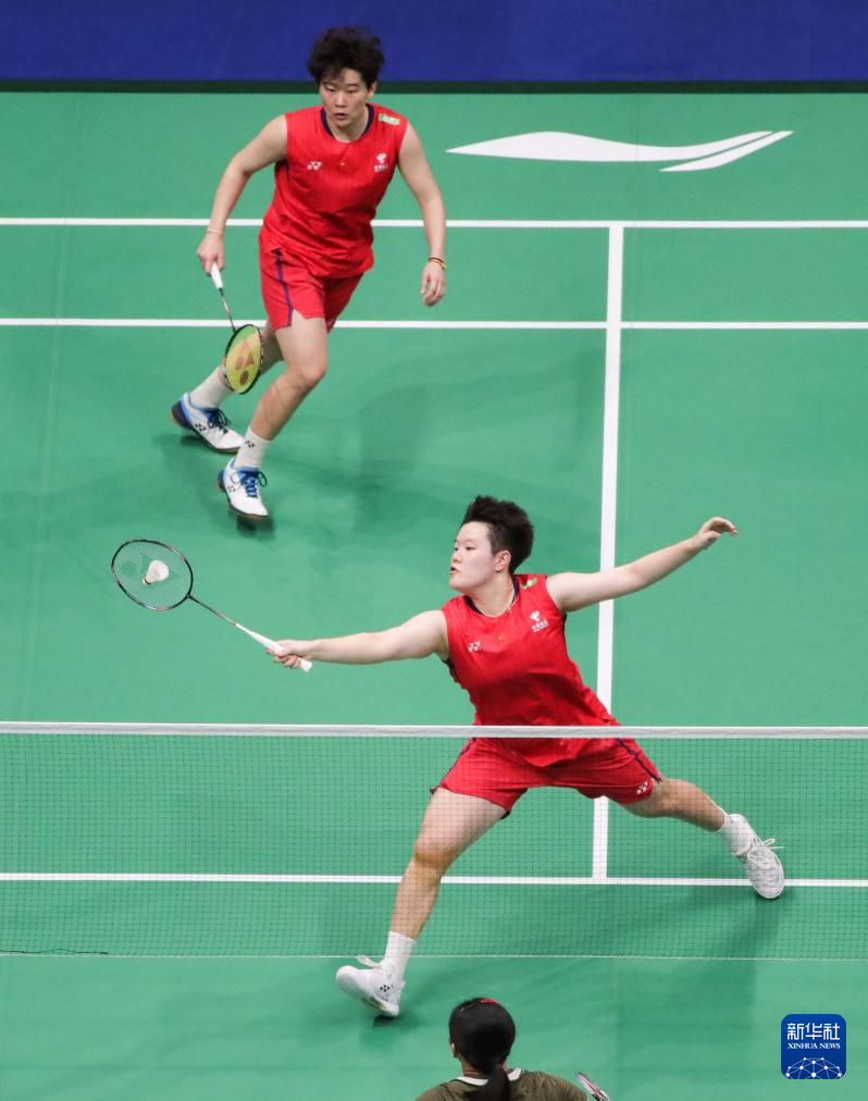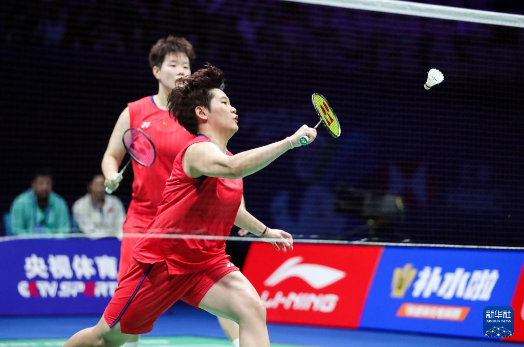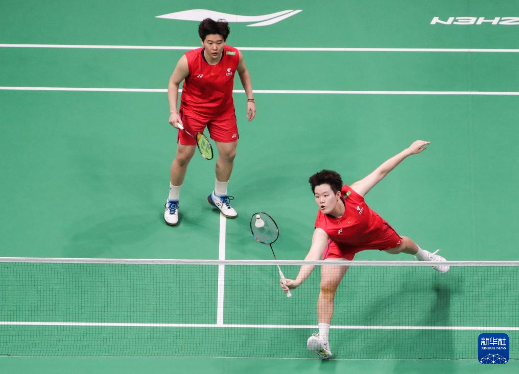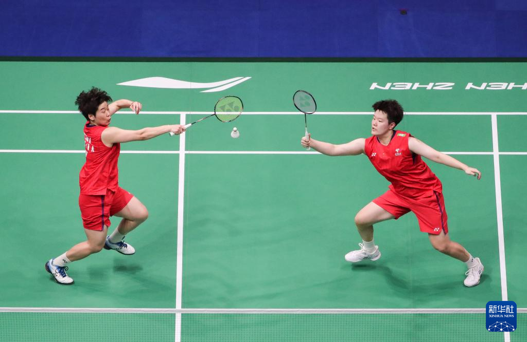 9月20日,刘圣书/谭宁(左)在比赛中回球。