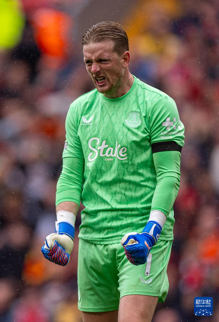 9月20日,埃弗顿队门将皮克福德在比赛中。