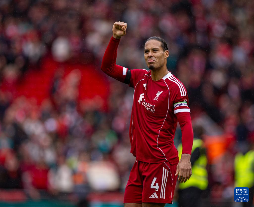9月20日,利物浦队球员范戴克在比赛后庆祝。