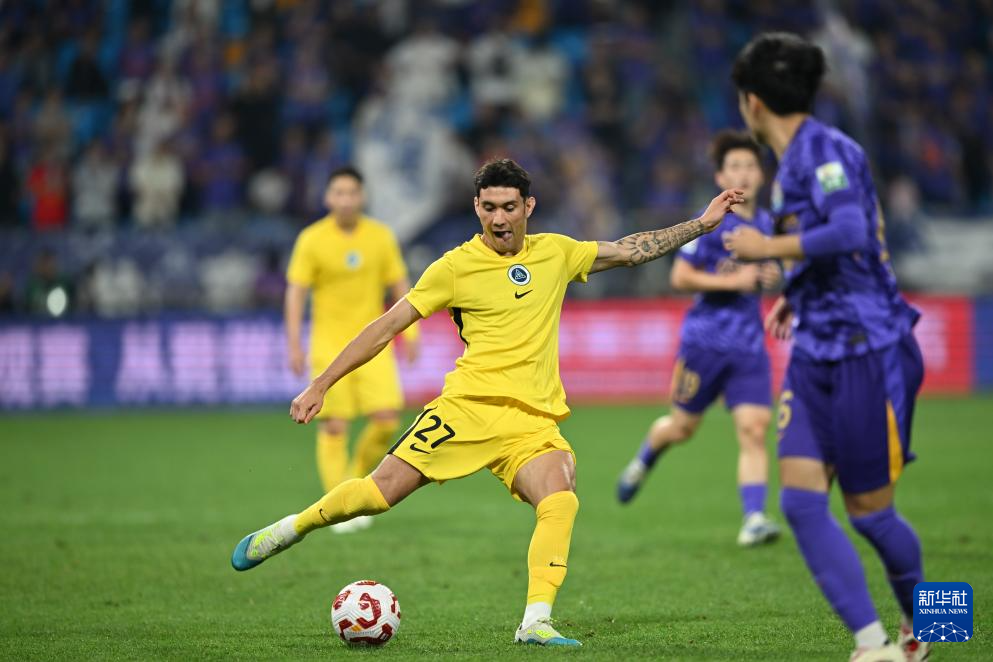 9月21日,天津津门虎队球员阿代米(左二)在比赛中射门。