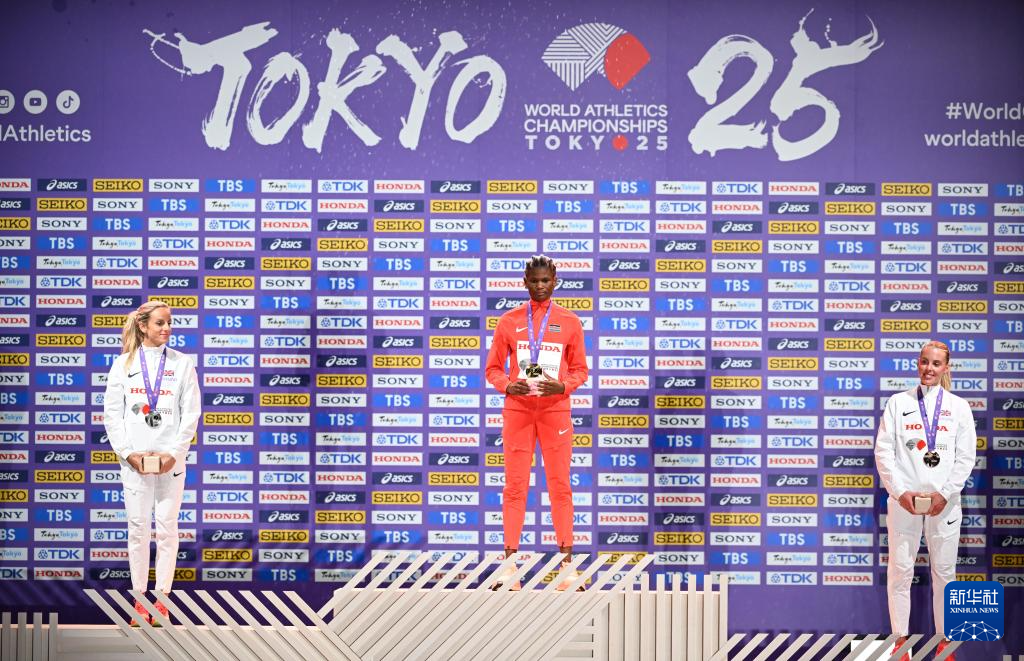 当日,2025年世界田径锦标赛女子800米颁奖仪式在日本东京举行。