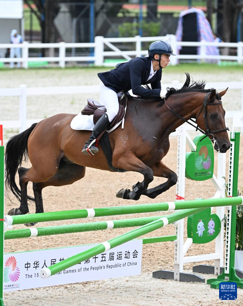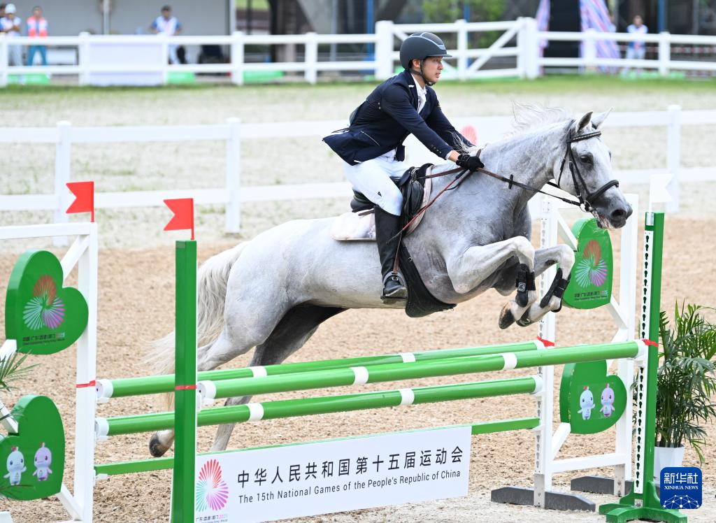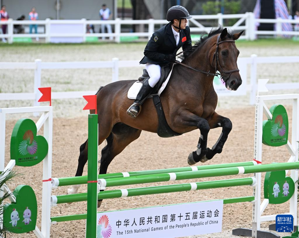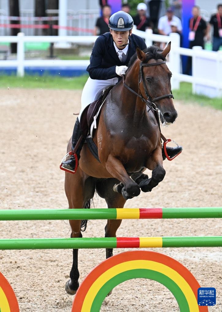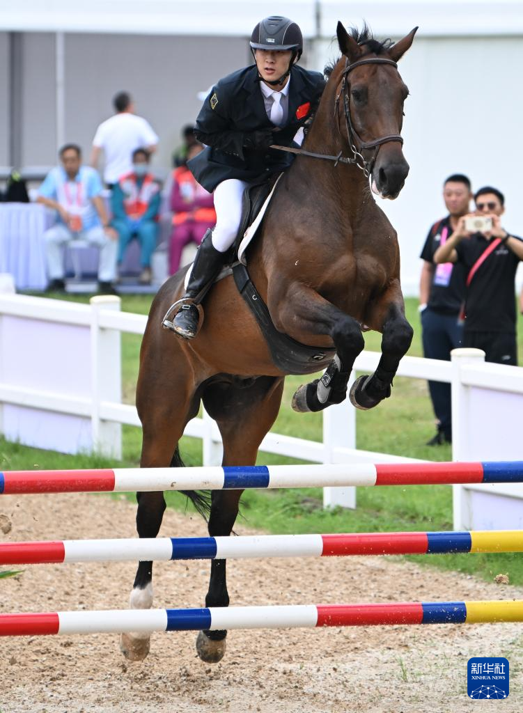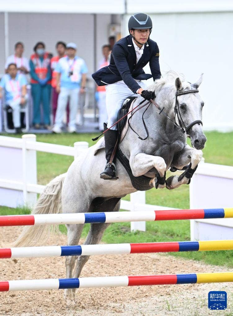 9月21日,湖北队选手陈柏良在现代五项马术比赛中。