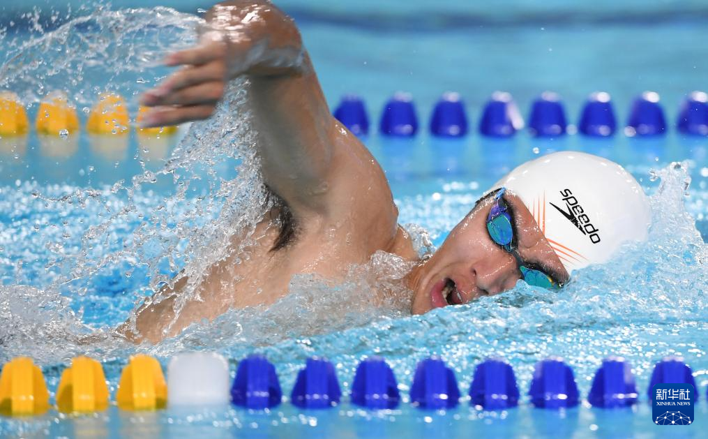 9月21日,上海队选手李刘畅在现代五项游泳比赛中。