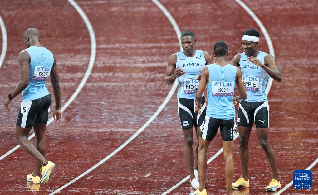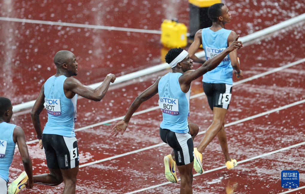 9月21日,博茨瓦纳队第四棒选手科伦(左一)在决赛中。最终,博茨瓦纳队获得冠军。