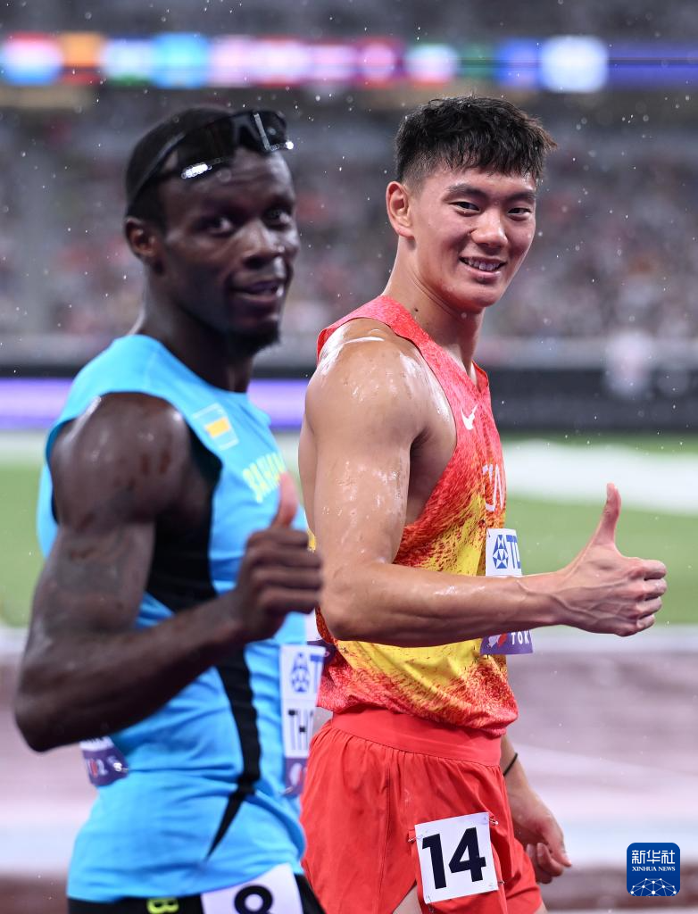 9月21日,费翔(右一)在男子十项全能1500米比赛后。