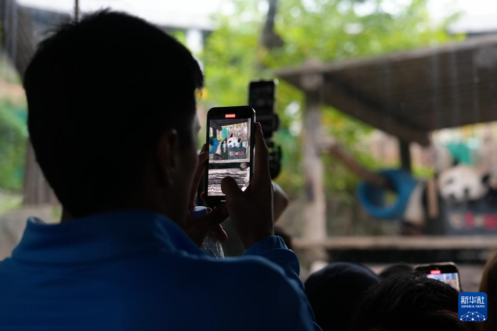 9月23日,球员、教练员、裁判员等在大连森林动物园与其他游客一同观看大熊猫。