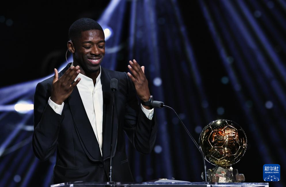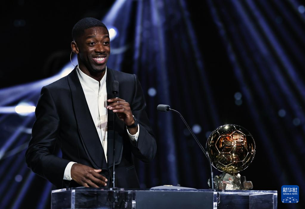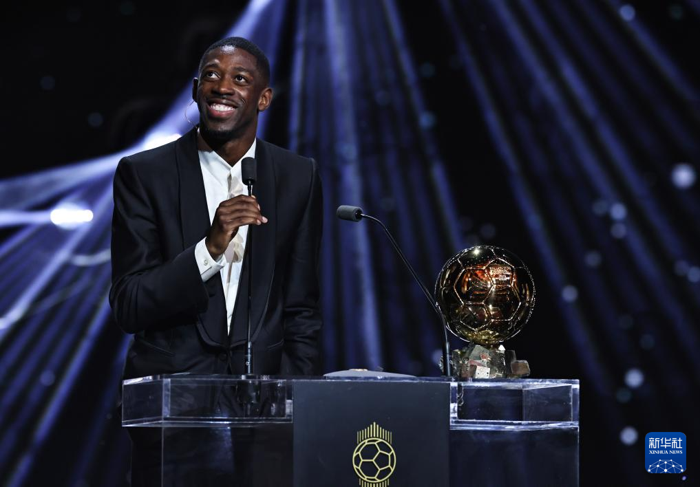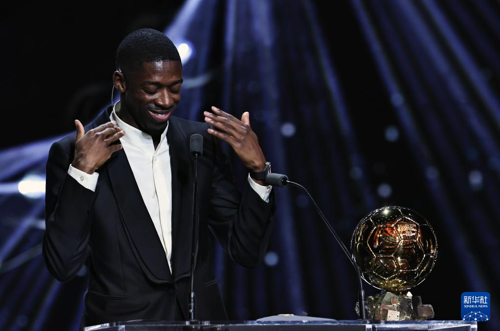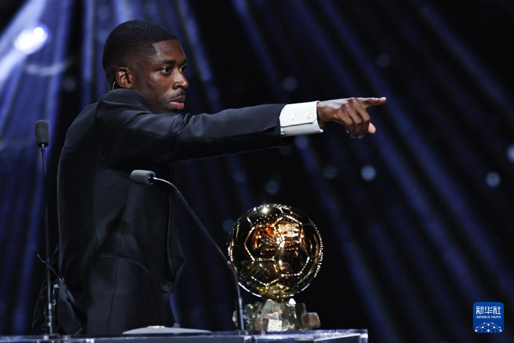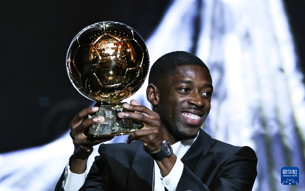 9月22日,巴黎圣日耳曼队法国球员登贝莱在颁奖仪式上。他获颁男足金球奖。