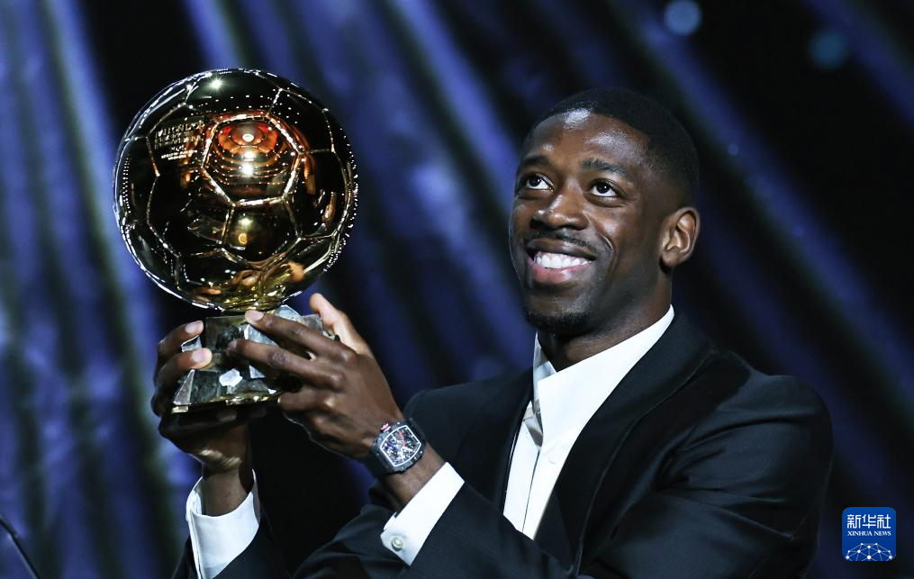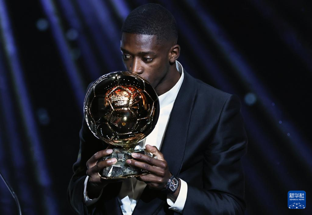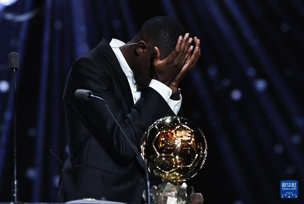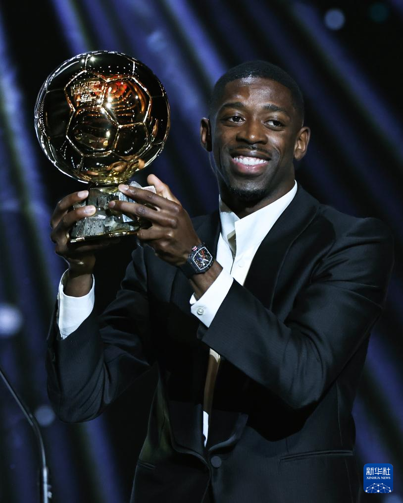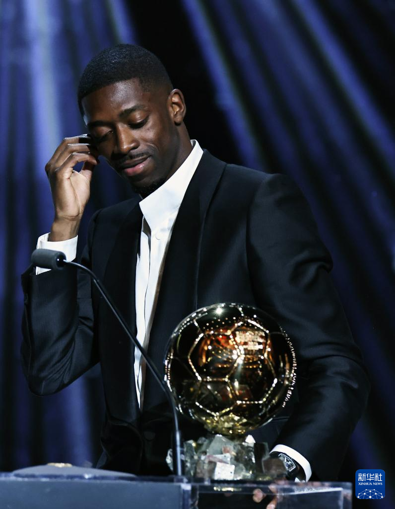 9月22日,巴黎圣日耳曼队法国球员登贝莱在颁奖仪式上。他获颁男足金球奖。