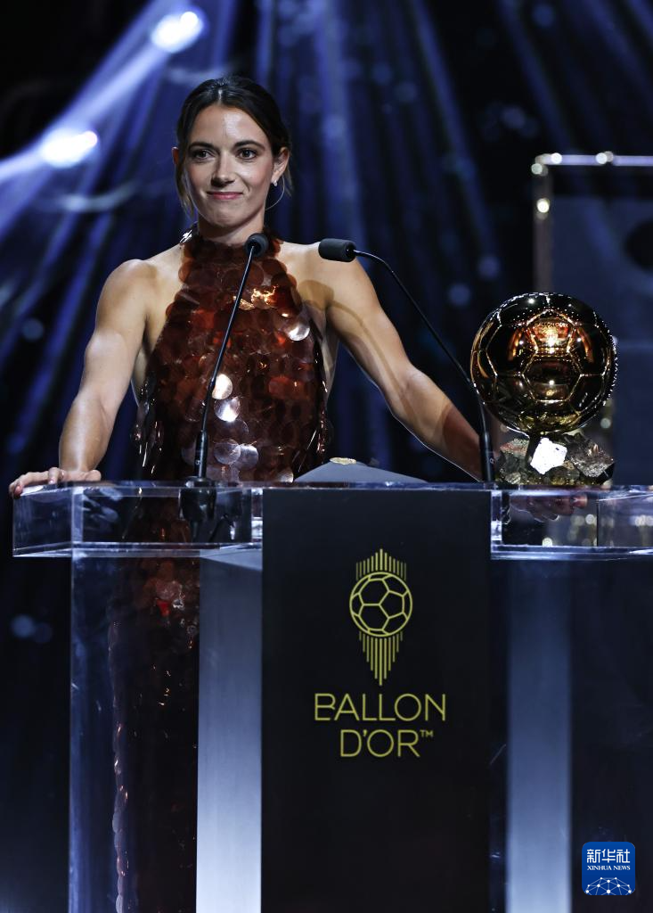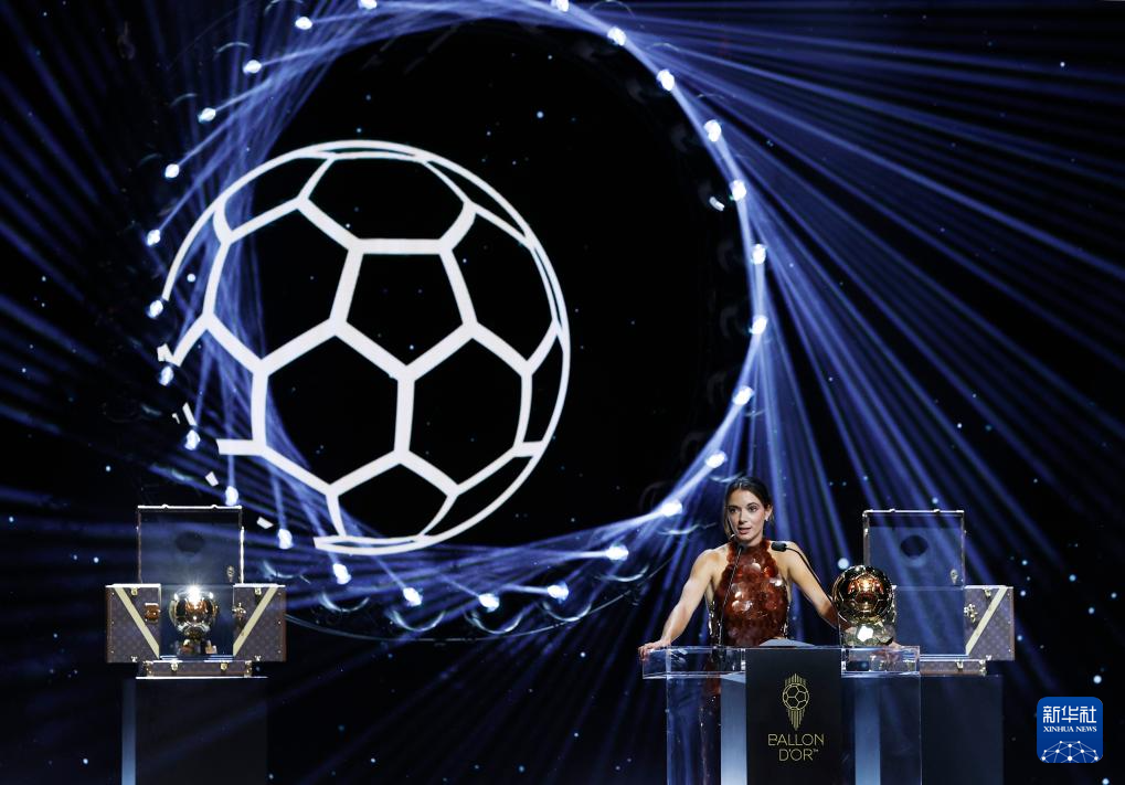 9月22日,巴塞罗那队西班牙球员邦马蒂在颁奖仪式上。她获颁女足金球奖,这是她连续第三年获得该奖项。