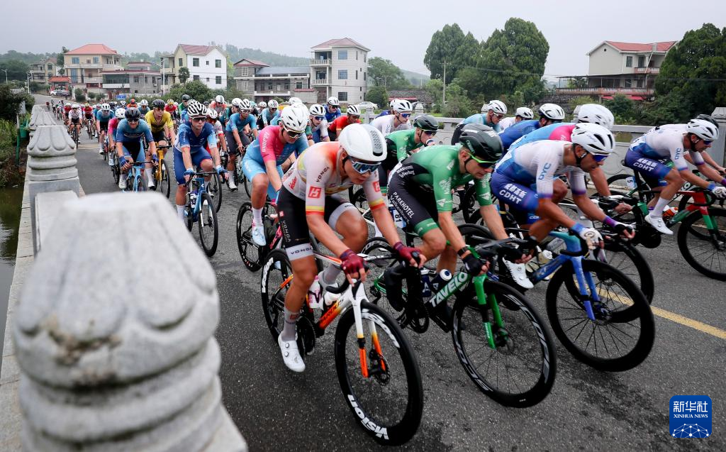 当日,第十三届环鄱阳湖国际自行车大赛第九赛段比赛在江西省吉安市泰和县举行。