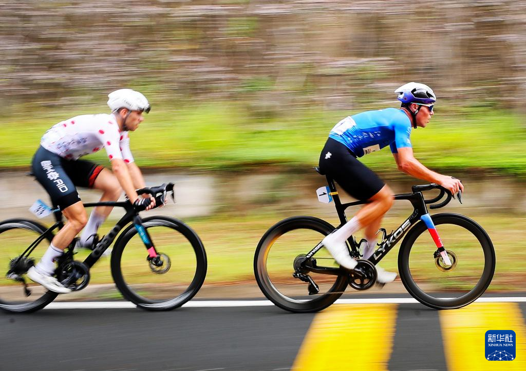 9月25日,中国成都DYC洲际车队车手里库诺夫(右)与德国助力车队车手马特海斯在比赛中。最终,里库诺夫获得赛段冠军。